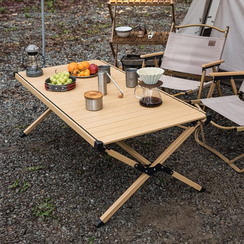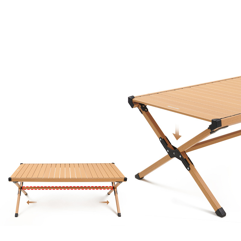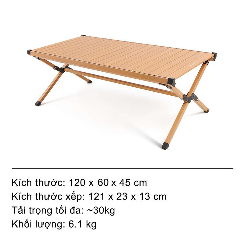 Bàn nhôm cắm trại FT10 Naturehike NH22JU007 mẫu bàn nhôm xếp gọn theo kiểu cuộn trứng, bàn xếp cắm trại cung cấp một không gian lớn cho nấu nướng, sinh hoạt. Sử dụng chất liệu nhôm đem lại một sản phẩm nhẹ hơn so với gỗ, mức độ chống chịu thời tiết tốt hơn, bền bỉ ngay cả khi bạn sử dụng sản phẩm dưới mưa. Thiết kế màu sắc nhẹ nhàng, bề mặt vân giả gỗ đem lại không gian cắm trại đơn giản nhưng chuyên nghiệp.