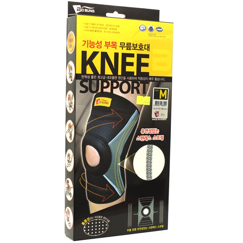 - Băng cố định hỗ trợ cho đầu gối có thêm phần nẹp hỗ trợ Aluminum tốt hơn