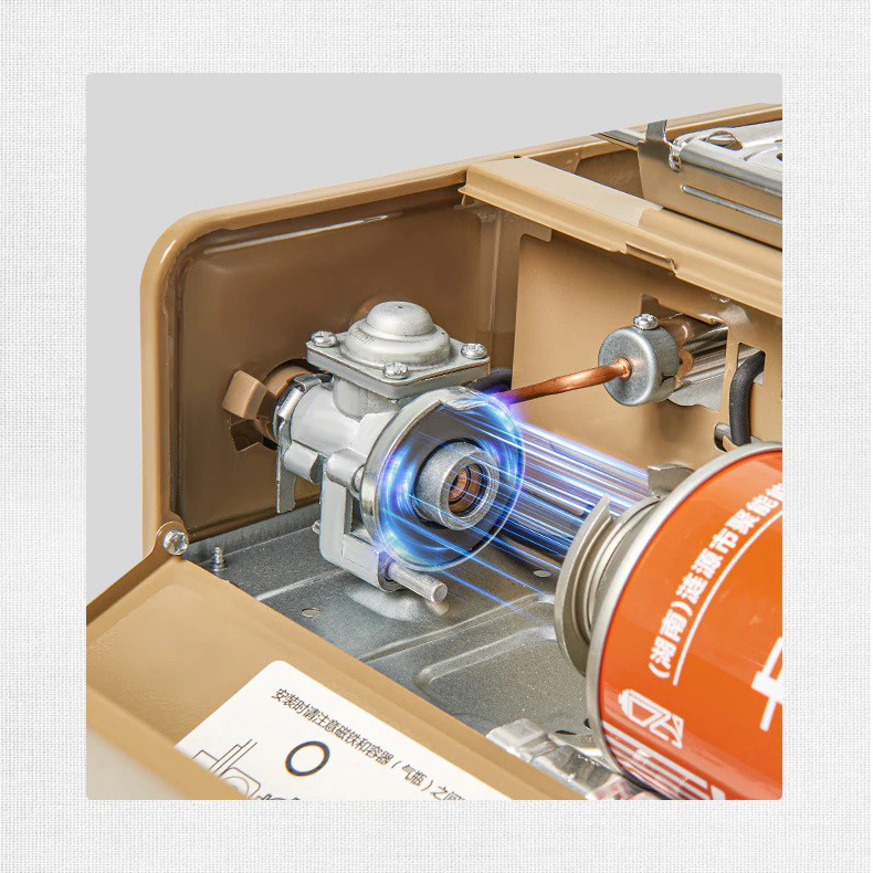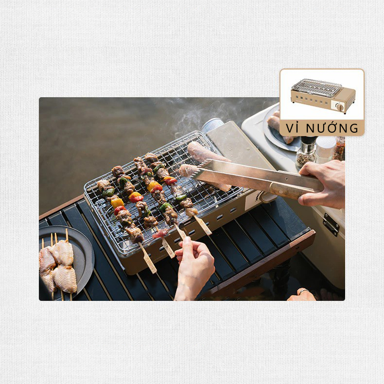 Nhiệt lượng bếp lên đến 2300W đạt chuẩn công năng nấu nướng tốt nhất hiện nay, lửa được trải đều 2 bên cạnh bếp giúp làm nóng đều khay nướng, khay lẩu,.. Bếp sử dụng bình gas mini đa dụng dễ dàng tìm mua ở bất kì đâu.