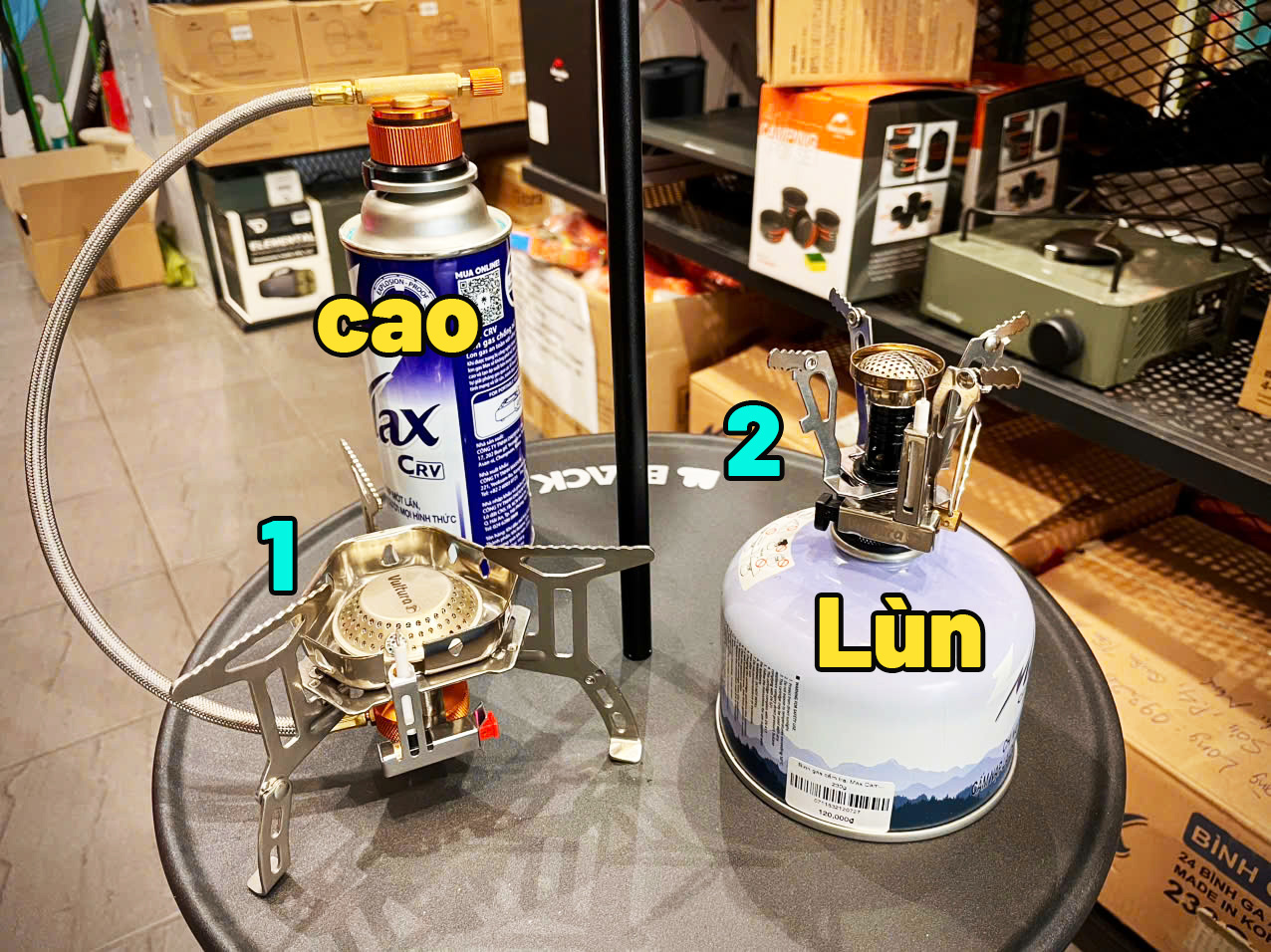 - Bếp số 1 dùng được cả bình lùn lẫn bình cao - loại bình thông dụng gần như tiệm tạp hóa ở đâu cũng có. Còn bếp số 2 chỉ dùng được với bình lùn ren vặn mà chỉ có những shop đồ cắm trại như FanFan mới có. Điều này rất quan trọng, nếu bạn đi Trek và sử dụng bếp số 2 thì phải mang đủ gas để dùng suốt chuyến đi vì rất khó tìm mua bình lùn.