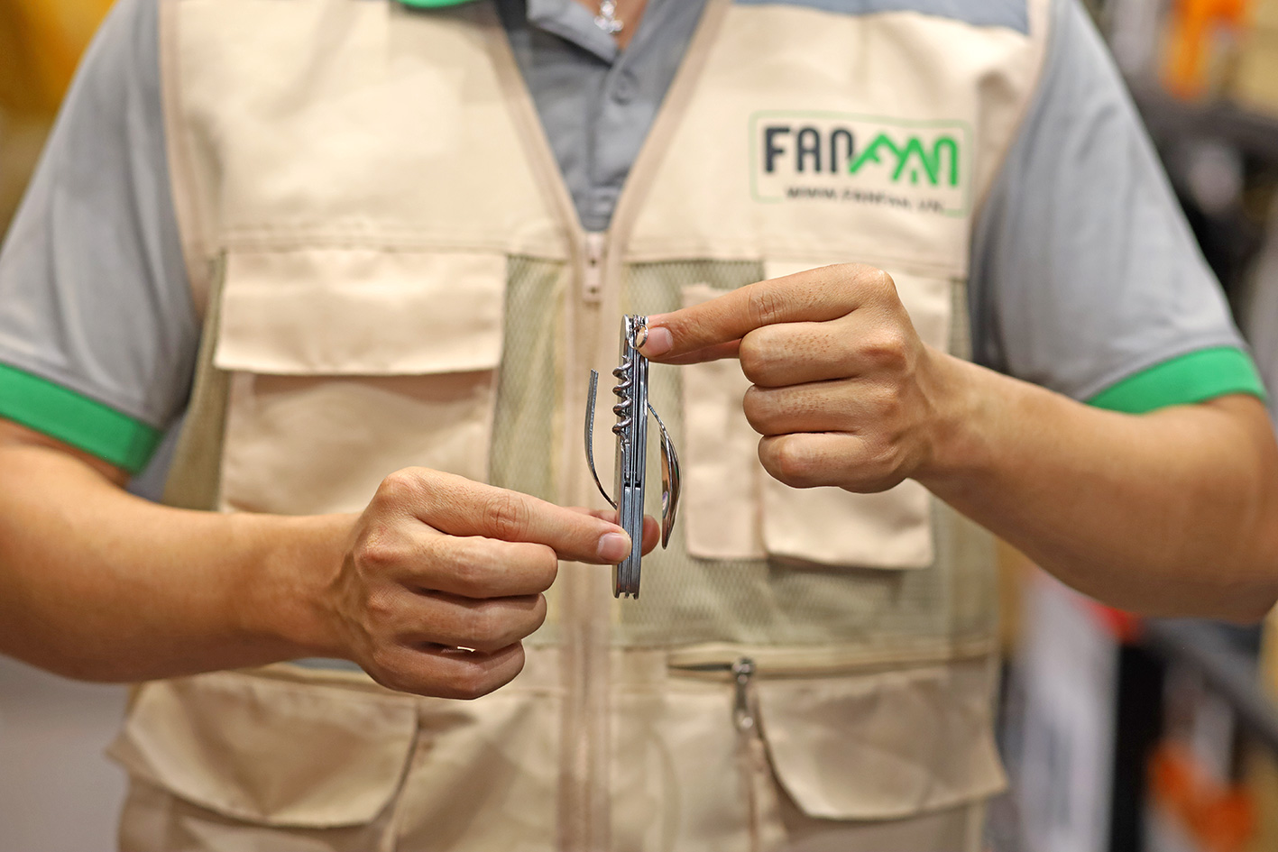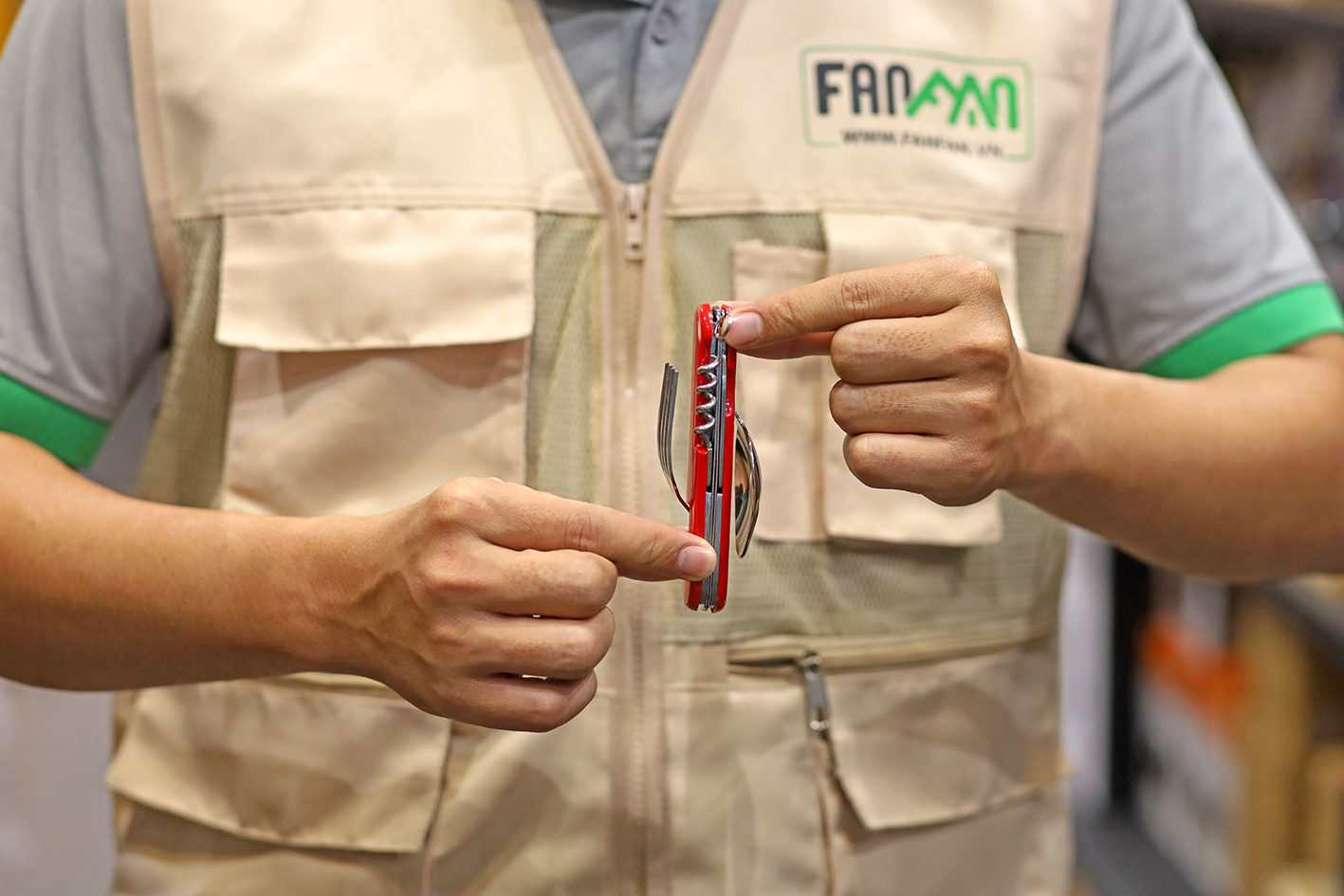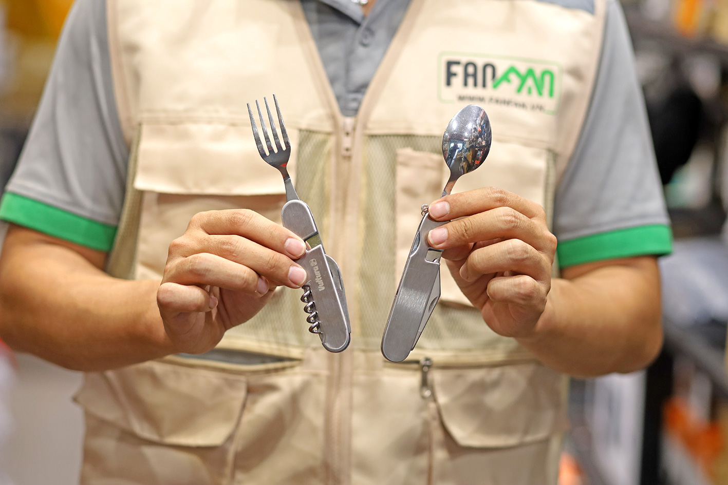 - Bao gồm 6 chức năng: Thìa; Nĩa; Dao; Khui lon đồ hộp; Khui nút bần (rượu); Đầu dùi.