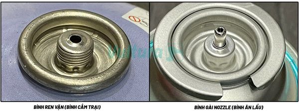 Bình thông dụng ở VN là loại bình lon dài miệng gài (nozzle) hay chúng ta thường gọi là "bình ăn lẩu". Còn ở Tây Âu thì bình lùn ren vặn chúng ta hay gọi là "Bình cắm trại" lại phổ biến hơn nhiều mà ở VN lại rất hiếm, chỉ tìm được ở các shop đồ Outdoor.