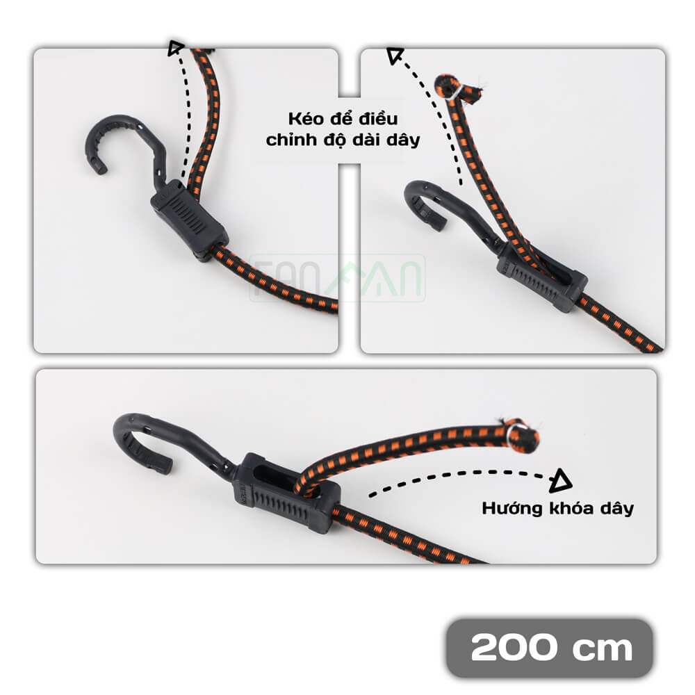 Dây ràng dài sử dụng để chằng hàng, ràng đồ, buộc đồ, thích hợp cho những chuyến du lịch bụi bằng xe đạp, xe máy, sử dụng trong cuộc sống hằng ngày hoặc trong công nghiệp.