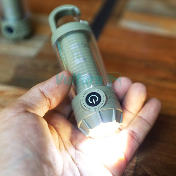 Đây là mẫu đèn pin tất cả trong 1 dành cho những người thích sự đơn giản và muốn chỉ 1 đèn pin cho mỗi chuyến đi. Bao gồm tính năng đèn pin và đèn bão lantern (sáng tỏa) để decor trang trí hoặc treo bên trong lều. Pin sạc 1200mAh, cổng sạc Type-C. Chế độ lantern với 3 màu: Trắng - Vàng - Đỏ