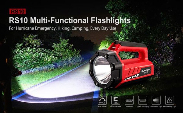 Đèn pin Klarus RS10 được trang bị cả đèn chiếu xa và đèn làm việc chiếu tỏa (COB LED) đồng thời cũng là đèn cảnh báo