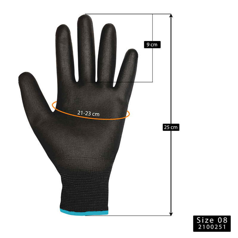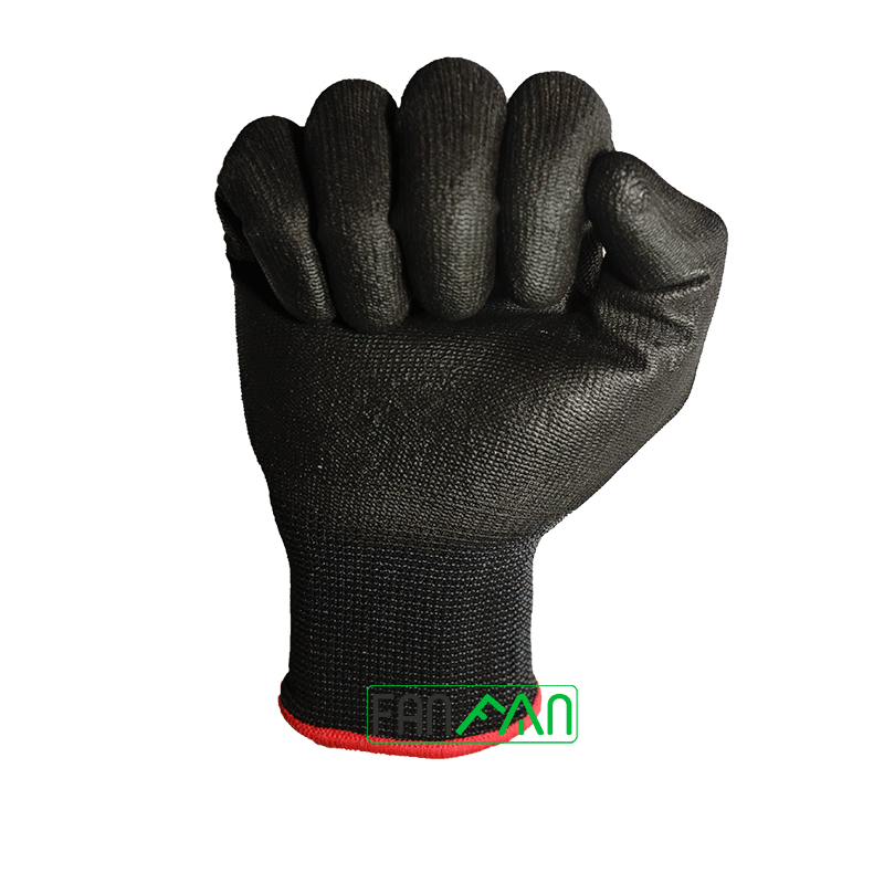 - Được phủ một lớp polyurethane màu đen trên lòng bàn tay và đầu ngón tay tăng khả năng ma sát, chống trơn trượt.