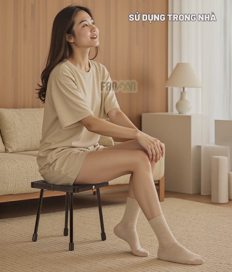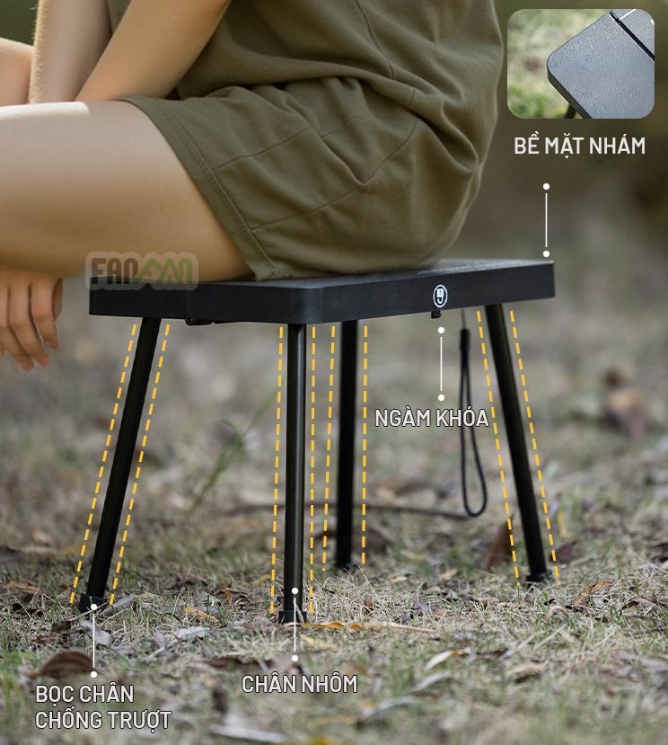 Chất liệu 4 chân bằng hợp kim nhôm, mặt ghế kiêm hộp đựng bằng nhựa ABS, chịu được tải trọng 150kg.