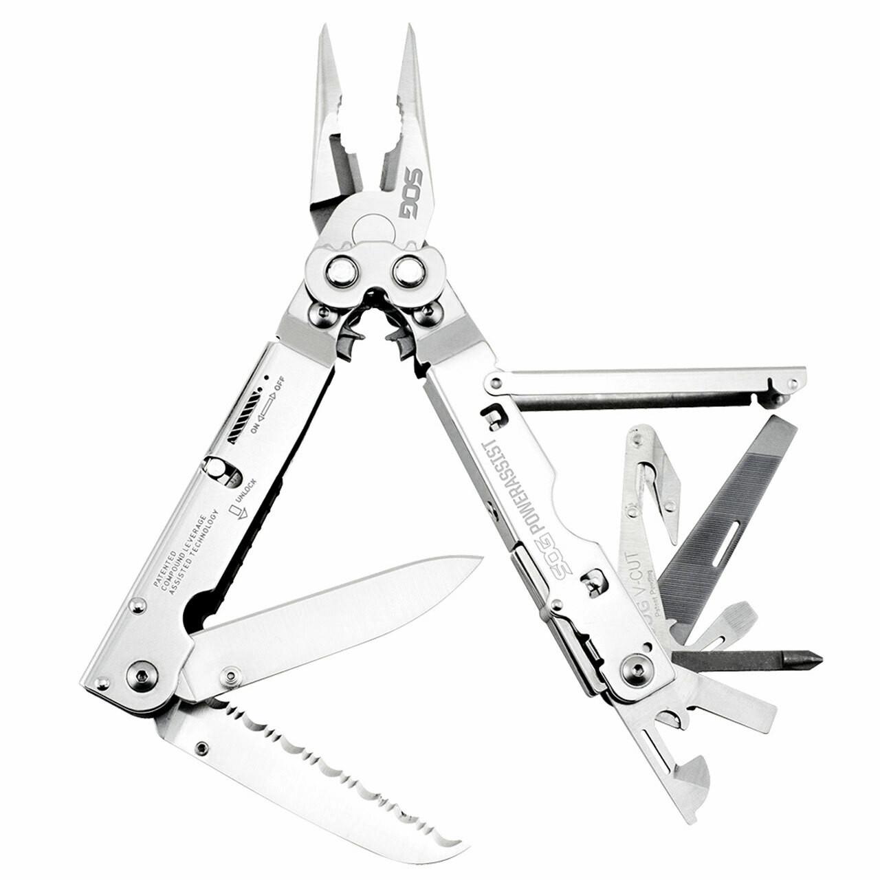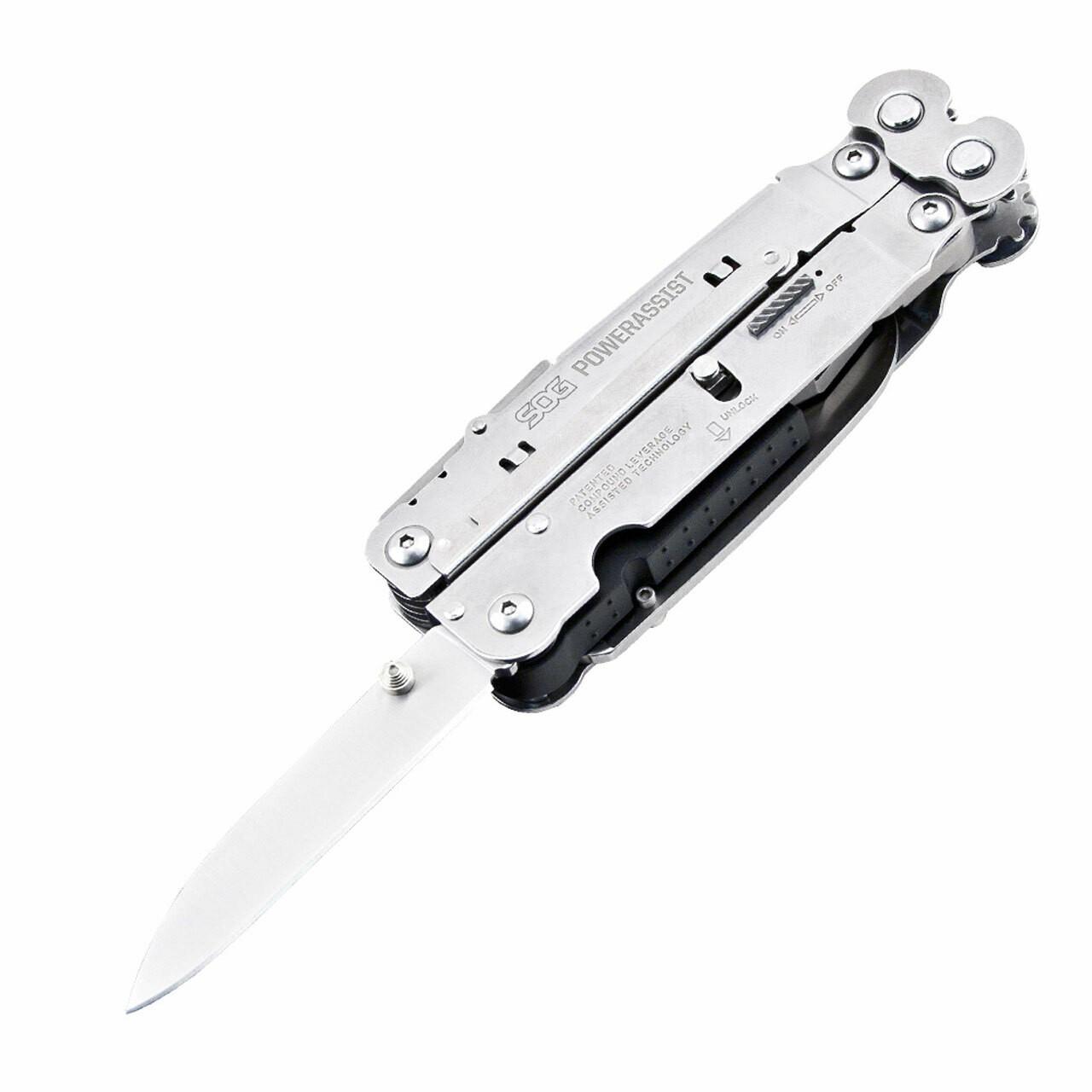 - SOG POWERASSIST là bộ dụng cụ đa năng rất mạnh mẽ, đặc biệt là về dao, vì tích hợp tới 2 lưỡi dao lớn bằng chất liệu thép siêu cứng 420HC nằm ngay bên ngoài, và chế độ bật mở bằng 1 tay cùng hệ thống khoá an toàn. Bạn có thể lấy dao ra sử dụng gần như ngay lập tức khi cần thiết.