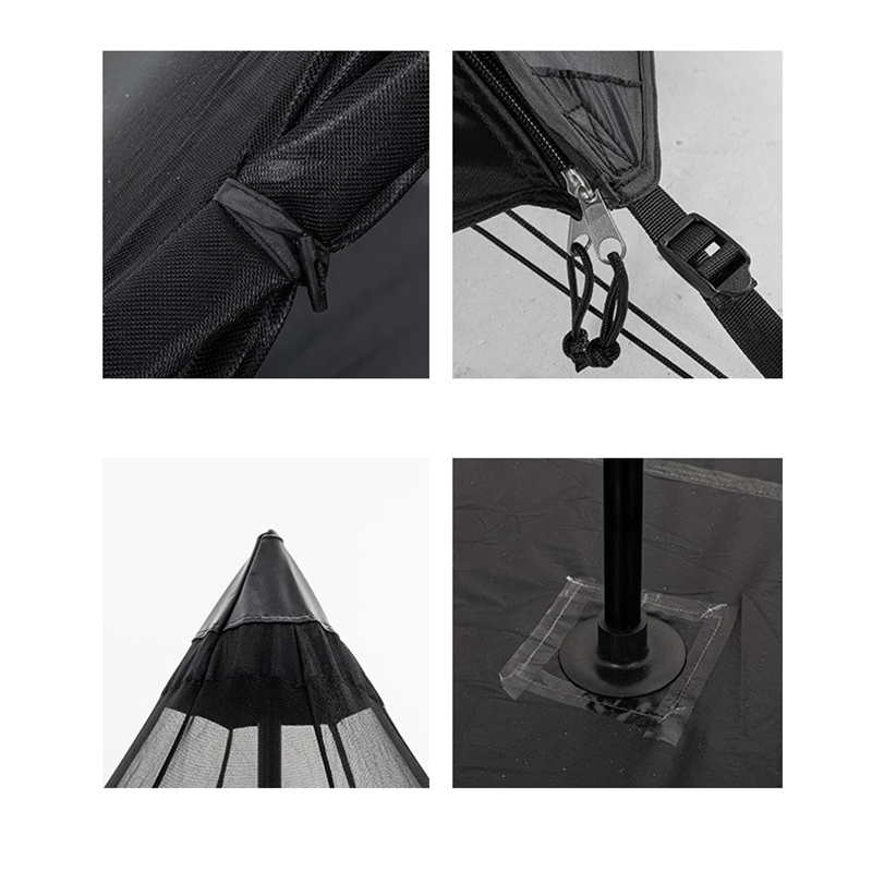 Lều Glamping 2 lớp với lớp trong là lưới mắt nhỏ chống côn trùng, lớp ngoài sử dụng vải 150D Oxford phủ tráng bạc có khả năng chống UV UPF50+, chống mưa >3000mm - có thể sử dụng dưới mọi điều kiện thời tiết. lưu ý hãy cắm cọc và căn dây đầy đủ, khoảng không gian giữa 2 lớp lều sẽ giúp lều thông thoáng hơn.
