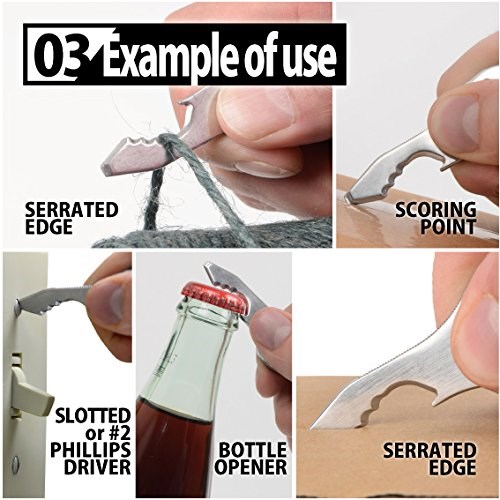 - Tích hợp nhiều công cụ hữu ích trong một chiếc móc rất nhỏ (cắt mở hộp, khui chai, cắt dây và tua vít dẹp)