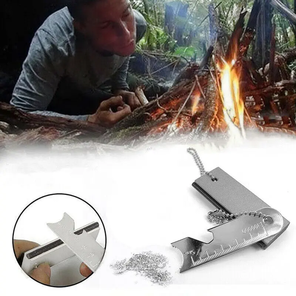 - Gồm 1 thanh Magnesium độ tinh khiết 99,9%, 1 thanh đá lửa (flint stone hay ferro-rod), 1 thanh cạo lửa đa năng đính kèm