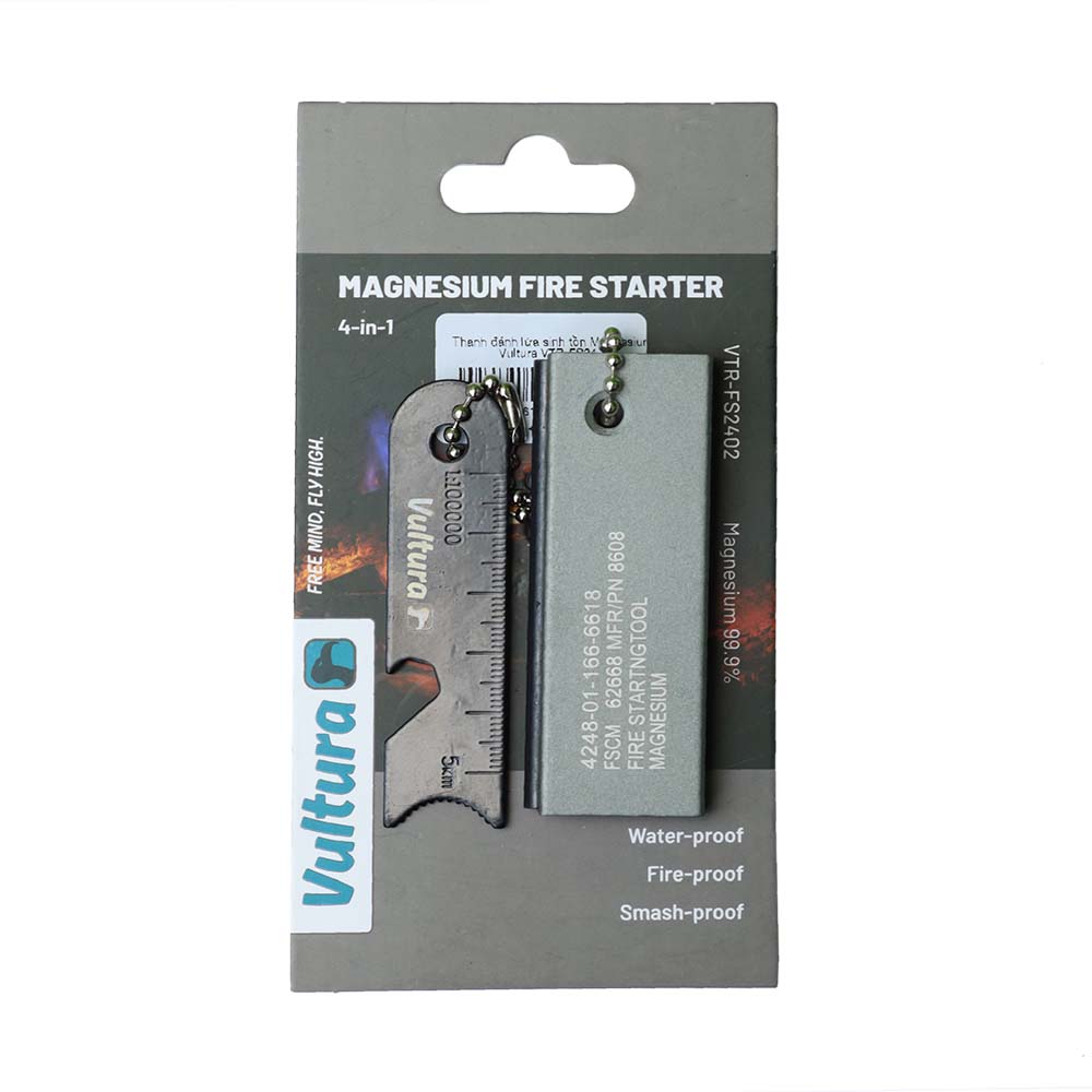 Đánh lửa là dụng cụ sinh tồn không thể thiếu trong những chuyến leo núi, trekking, đi rừng,.... Thanh đánh lửa sinh tồn Magnesium Vultura VTR-FS2402 sử dụng thanh Magnesium để tạo đống vụn magie có tác dụng bắt lửa như diêm sinh giúp quá trình mồi lửa dễ dàng, nhẹ nhàng hơn cho những người thấy khó khăn khi thao tác với thanh đánh lửa Ferro-rod truyền thống. Với ưu điểm chịu được mọi thời tiết, chống nước, chống va đập, chống cháy nổ, không hư hỏng theo thời gian, thanh đánh lửa Magnesium Vultura sẽ thế chỗ cho bật lửa và diêm vốn vô cùng dễ hỏng, đi cùng bạn trên mọi cung đường.