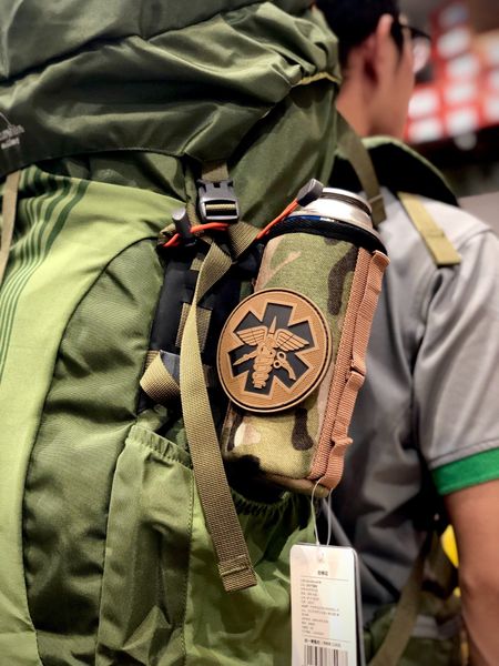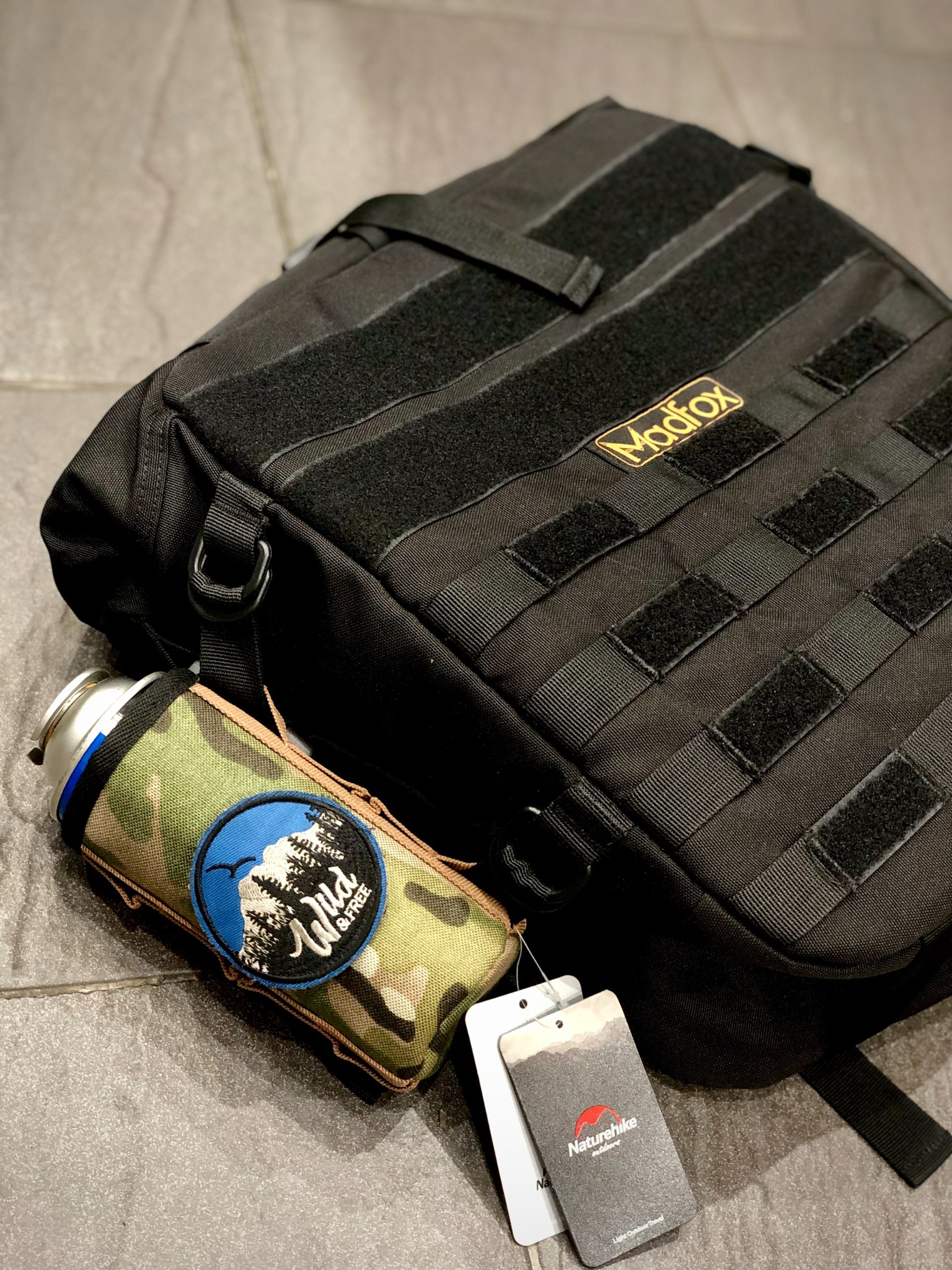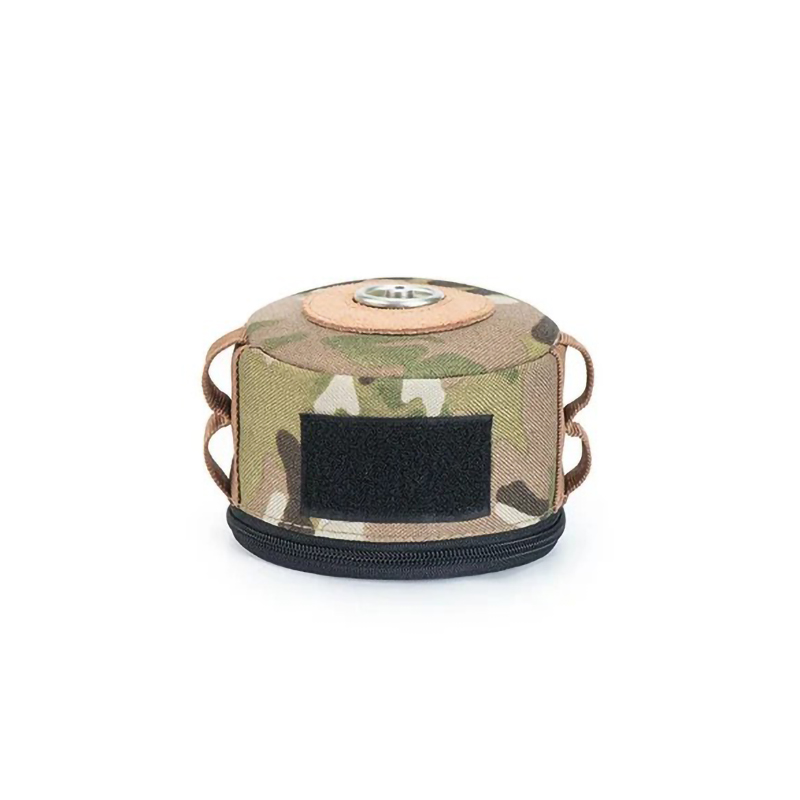 Với chất liệu chính là vải Polyester họa tiết Camouflage ngụy trang giúp hạn chế tối thiểu ma sát. Ở mặt trước có 1 patch dán velcro để bạn có thể trang trí tùy thích. Bên hông là hệ thống Molle để bạn có thể trang bị thêm móc carabiner để móc treo bình gas lên ba lô, hoặc cũng có thể dùng thêm các loại móc chuyên dùng cho túi tác chiến trên thị trường để xỏ và cố định nó lên ba lô. Đây là một trong những món phụ kiện giúp tạo điểm nhấn đặc biệt trong gian bếp dã ngoại của bạn.