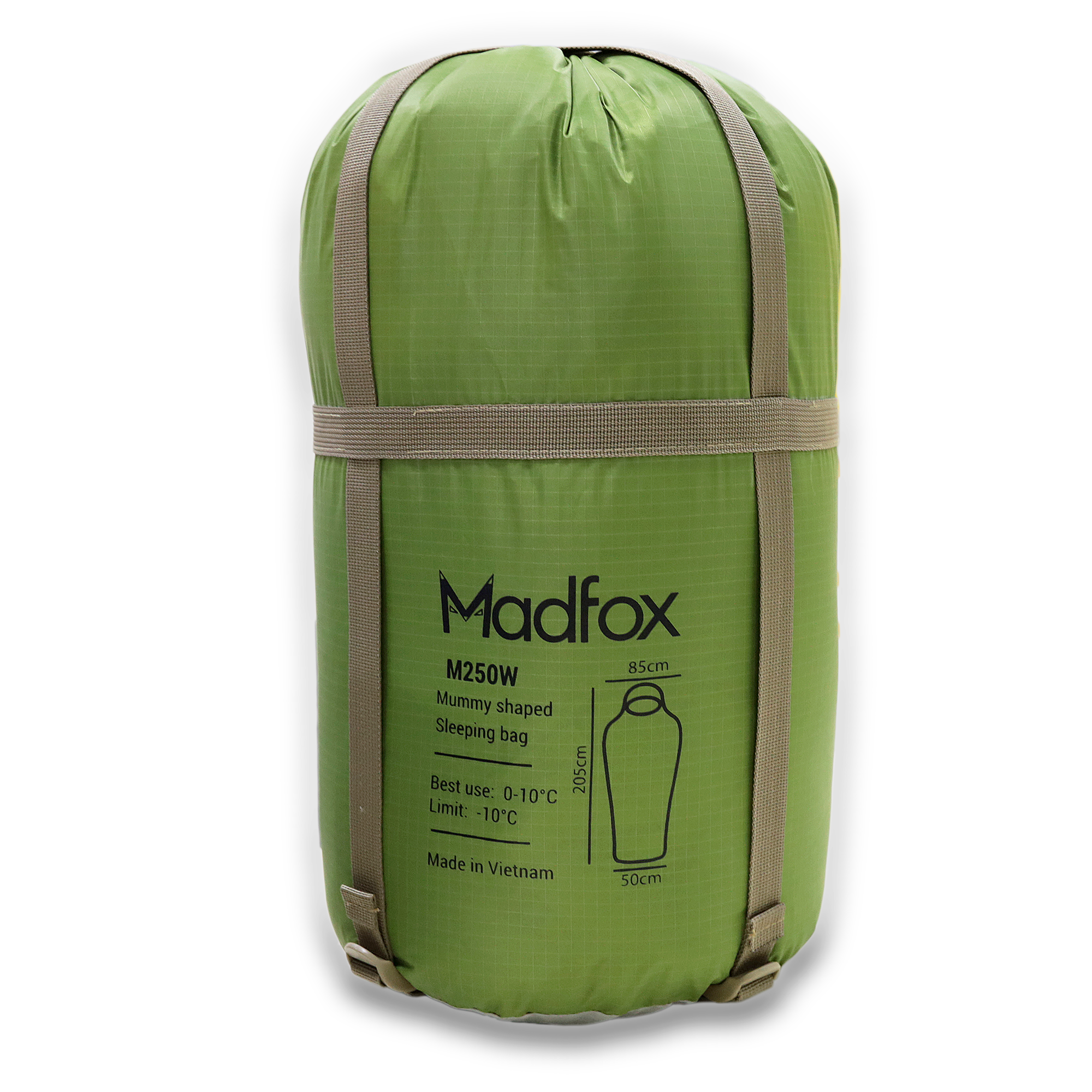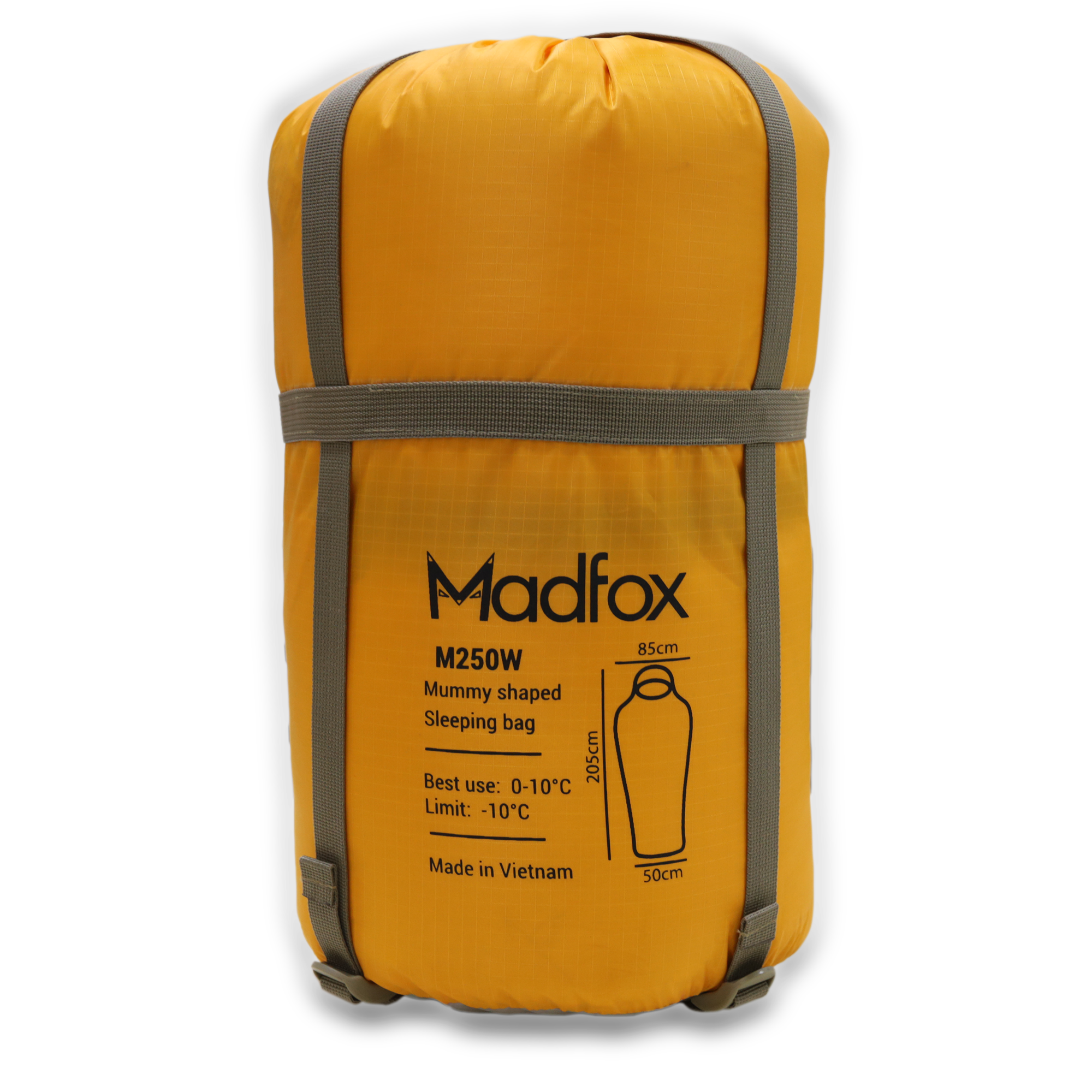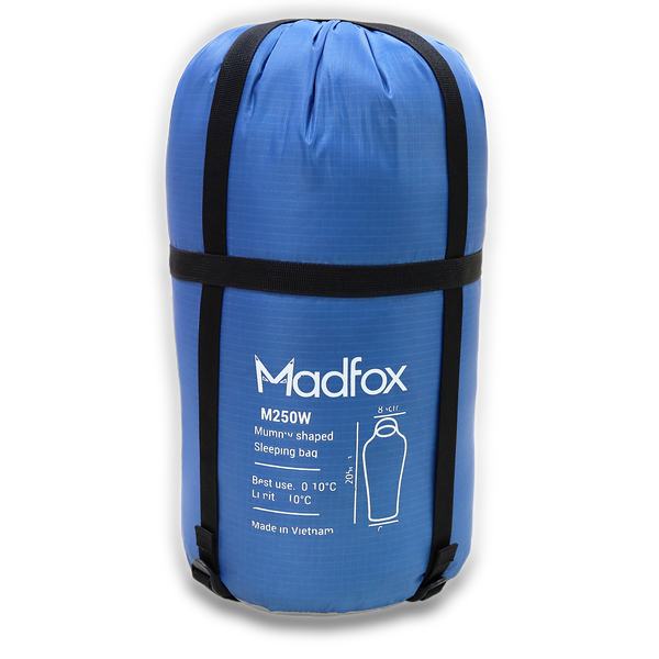 Túi ngủ muà đông chống thấm MADFOX M250W - loại túi ngủ dùng cho dã ngoại, cắm trại, đặc biệt thích hợp sử dụng cho những nơi có nhiệt độ thấp. Túi ngủ M250W với thiết kế mummy shaped (dạng xác ướp hay túi ngủ con nhộng) có nón với dây rút túm lại, ôm sát cơ thể, nâng cao tối đa khả năng giữ ấm.