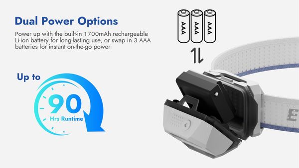 - Tính năng hiện đại & gọn nhẹ : Đèn được trang bị bóng hổng ngoại hỗ trợ bật tắt bằng cử chỉ vẫy tay, giúp thuận tiện trong thao tác hoặc tay bám bẩn mà không phải chạm vào công tắc vật lý từ đèn, dây đeo êm ái cùng khả năng chỉnh góc lên tới 90 độ giúp linh hoạt góc chiếu sáng.