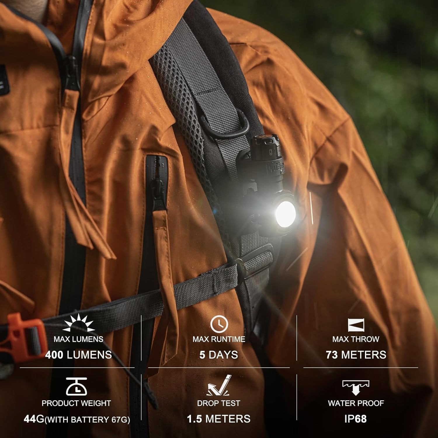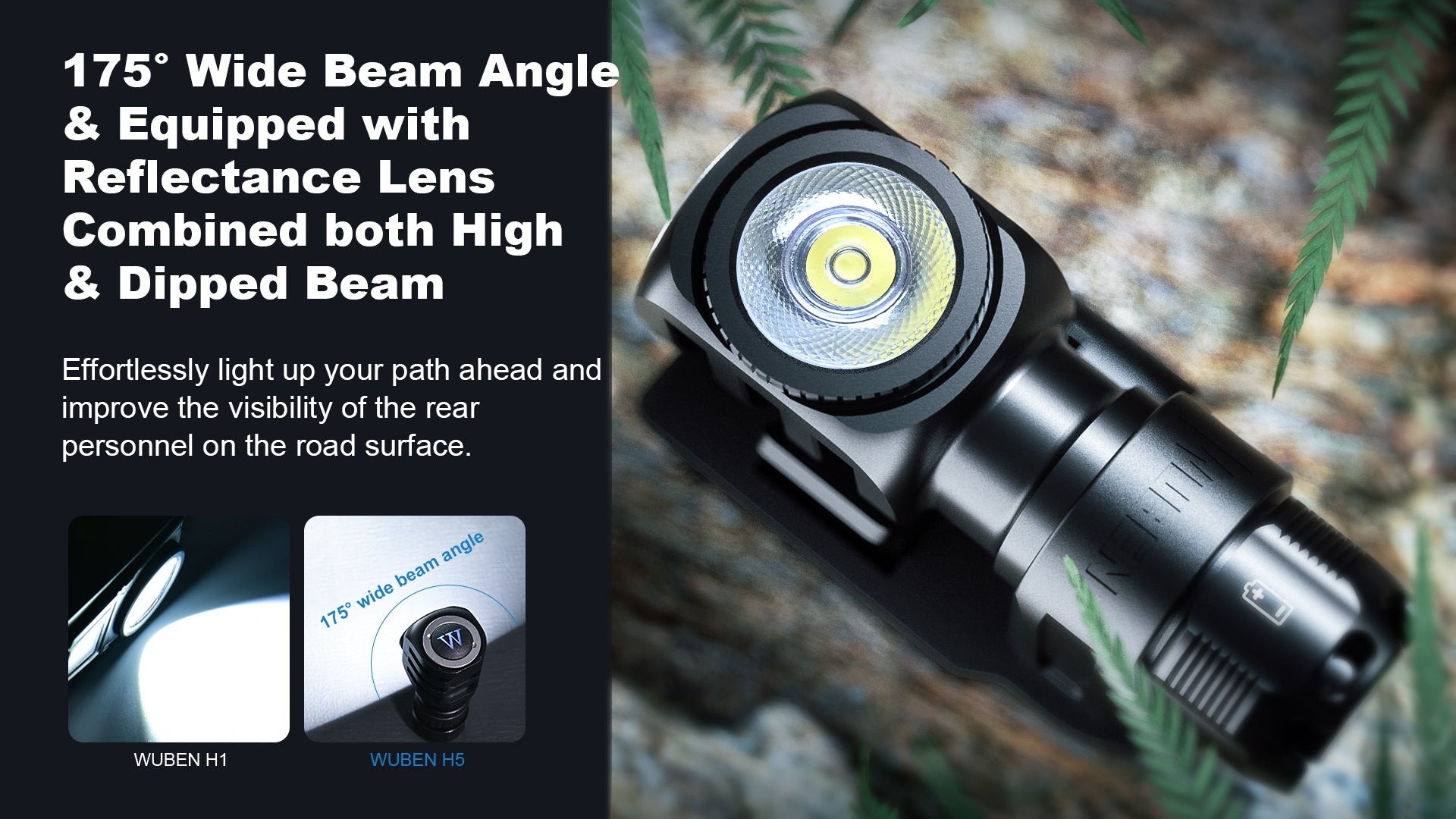 - Mount kết nối thông minh & Đa năng : Wuben H5 được trang bị một chiếc mount kết nối cực kì linh hoạt với trục xoay mang lại khả năng thay đổi góc chiếu sáng cho đèn 360 độ ngang dọc, có khả năng kết nối với dây đeo đầu và kẹp lên balo / thắt lưng / mũ, phía sau bộ phận này còn được tích hợp thêm nam châm tăng độ tùy biến, đèn cũng có thể dễ dàng tháo lắp khỏi mount thành một chiếc đèn pha đơn lẻ, và tất nhiên vị trí đuôi đèn cũng được trang bị nam châm có thể tự đứng vững chắc trên các bề mặt kim loại.