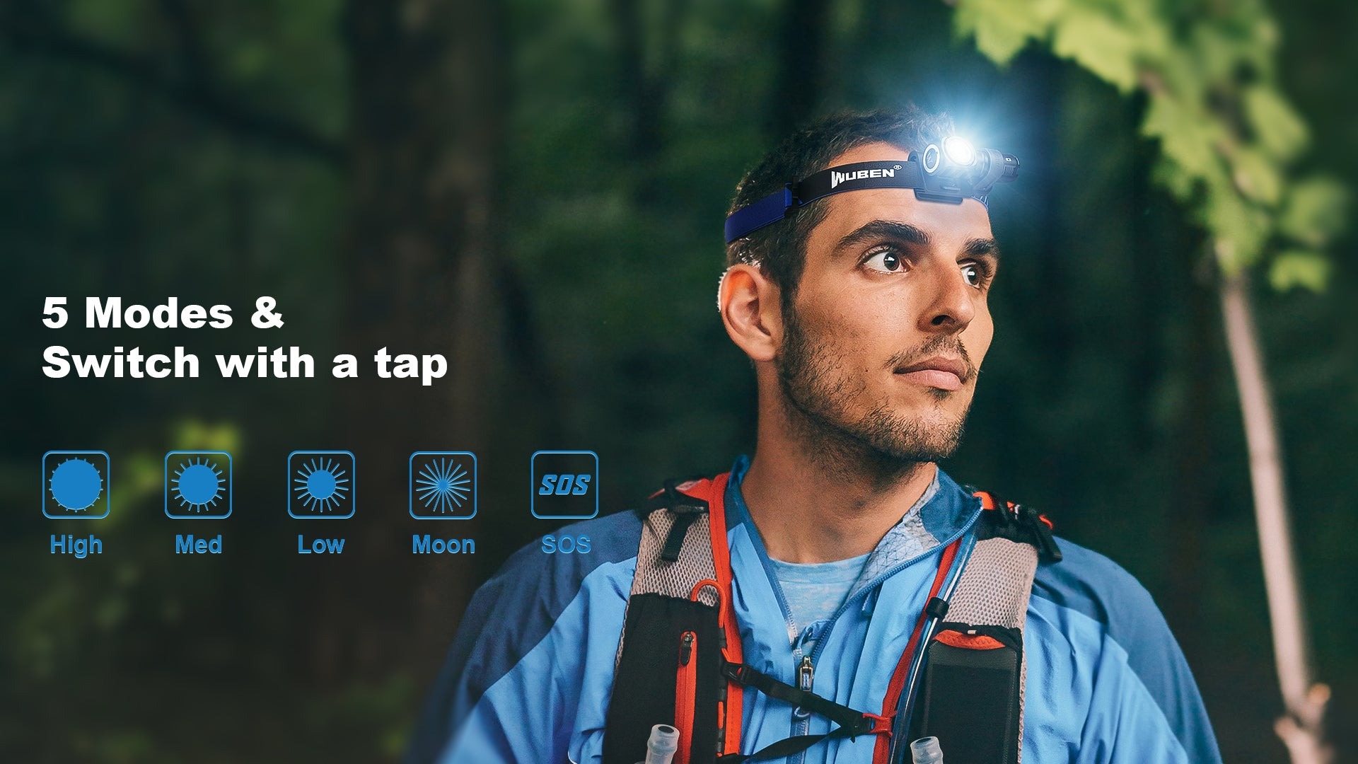 - Nhiều chế độ & Nhỏ gọn : Đèn được trang bị 5 chế độ chiếu sáng khác nhau và giao diện người dùng đơn giản giúp truy cập nhanh vào các chế độ sáng từ Moon (thấp) đến High (cao) và SOS chỉ với vài thao tác nhấn nhả đơn giản, kích thước cực nhỏ gọn chỉ 72 x 23.8 (mm) và trọng lượng chỉ 67g mang lại sự thoải mái và không nặng nề khi sử dụng làm một chiếc đèn đội đầu.