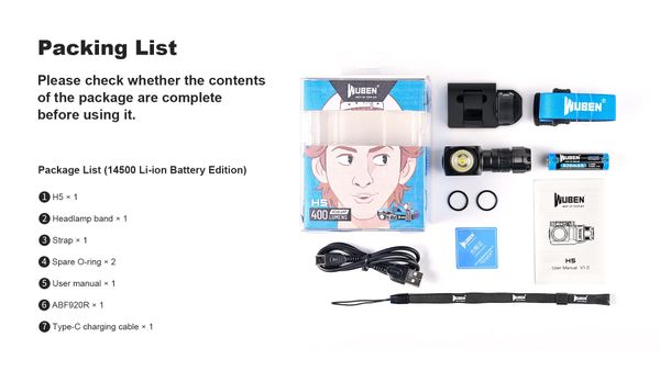 - Pin sạc tiện lợi & Đa dụng : Đèn được trang bị một viên pin sạc 14500 dung lượng 920mah được tích hợp sẵn cổng sạc TYPE-C trên thân pin mang lại khả năng vận hành liên tục lên đến 120 giờ ở chế độ tiết kiệm và khả năng sạc đầy khổi pin chỉ trong 2.5 giờ giúp duy trì nguồn sáng trong những tình huống cần tiết kiệm, ngoài ra dể tối ưu khả năng sử dụng, đèn có thể dùng cả pin phổ thông AA (dùng một lần) và duy trì được khoảng 80 giờ hoạt động với loại pin này, điều này biến H5 trở thành một chiếc đèn dễ sử dụng hơn bao giờ hết.
