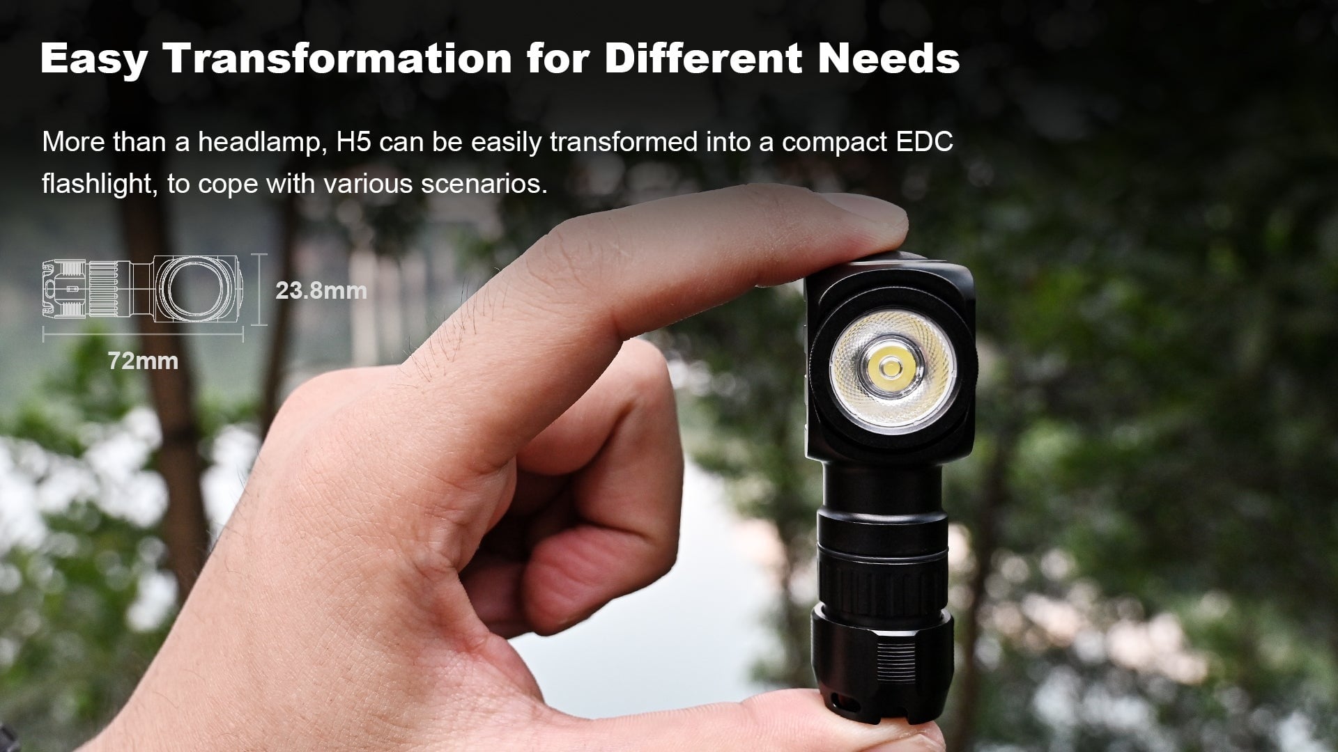Wuben H5 là một chiếc đèn pin kẹp đa năng (multifunctional clip flashlight) độc đáo, nổi bật với thiết kế linh hoạt khi được trang bị một bộ phận kẹp đèn tháo nhanh đa năng được tích hợp nhiều tiện ích (xoay 2 hướng 360 độ, đế nam châm, pad kẹp đa năng) cho phép người dùng sử dụng như một chiếc đèn pin đội đầu (headlamp) hoặc đèn pin cầm tay mini (mini flashlight) thông thường, hay dùng kẹp mũ, đáp ứng nhu cầu chiếu sáng trong mọi tình huống.